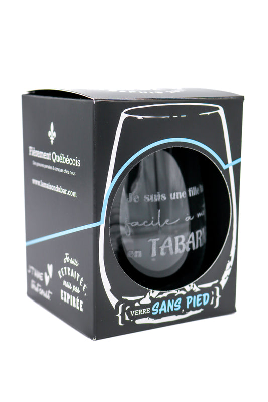 Verre à vin sans pied Je suis une fille facile... facile à mettre en tabarnak - La Maison Du Bar