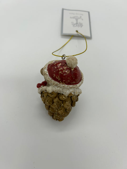 Ornement d'un couple de souris dans un cône de pin